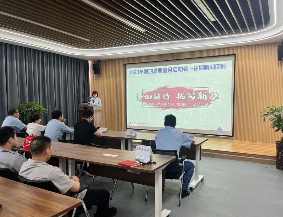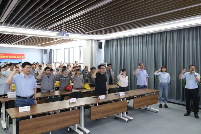 泓冠新能源召开第四季质量月活动启动会发表时间:2023-05-09 13:15 2023年5月4日下午泓冠新能源召开了第四季质量月活动启动大会。到会的有公司总经理刘元林、生产副总洪臻超,以及质管部、制造部、安环设备部全员。会议共包括了历年质量月活动回顾、领导致辞、本次活动基本介绍及宣誓和签名四个环节。