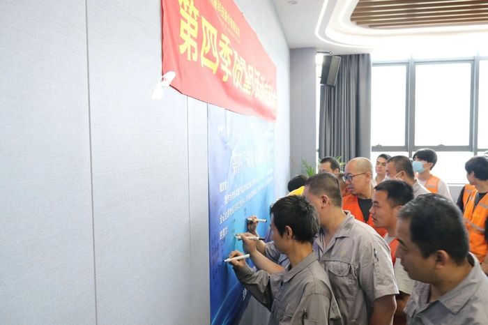 图5:全员签字 最后,与会人员在刘总的带领下进行了质量宣誓并郑重签名。 至此本次启动会圆满结束,质管部、制造部、安环设备部将以此为契机,进一步夯实人员品质意识,使产品质量迈上新的台阶 图文/赵姣 |